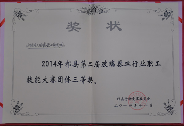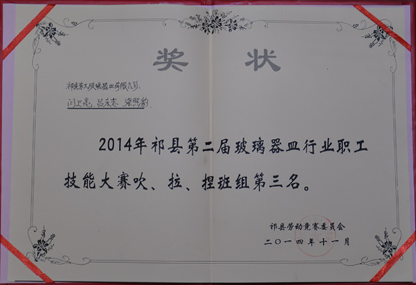 2014年被“中國(guó)日用玻璃協(xié)會(huì)授予高腳帝王杯、公爵杯榮譽(yù)稱號(hào)”